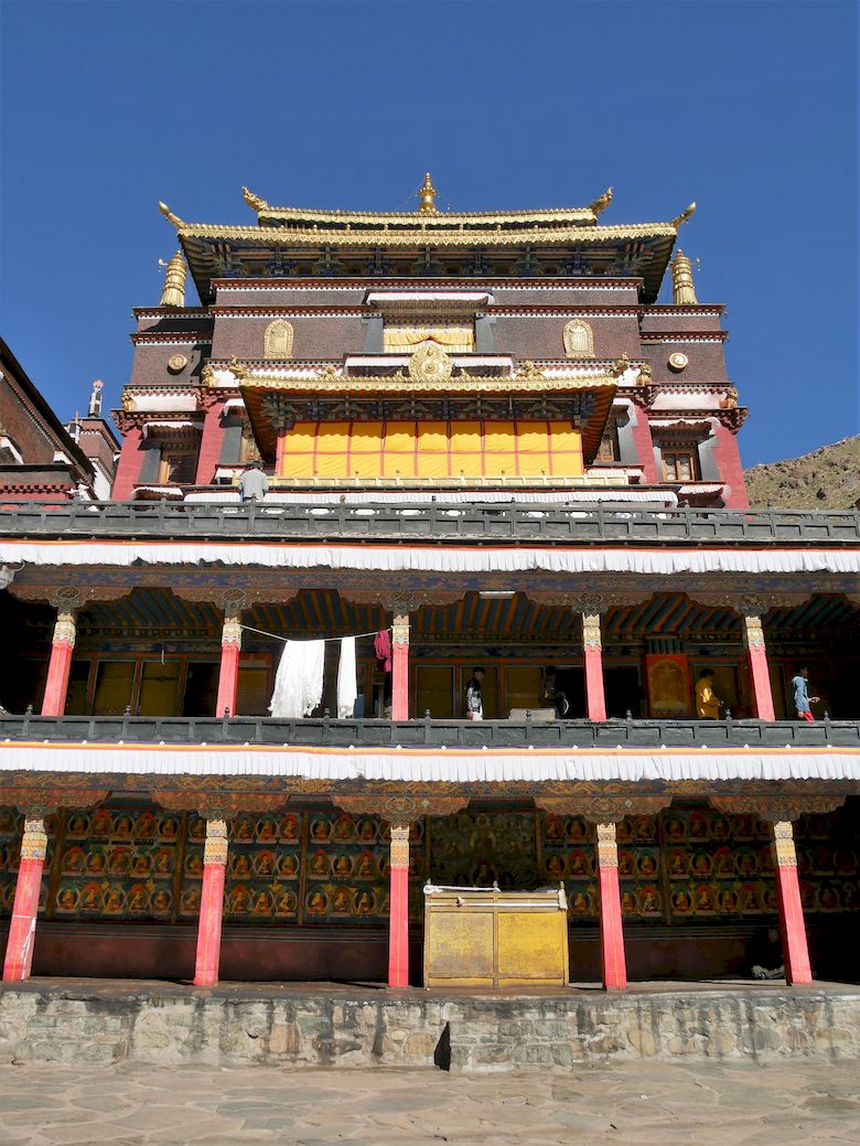 Im Tashilumpo-Kloster lebten früher bis zu 4.000 Mönche. heute sind es noch rund 600. Zu Fuß ging es auf den Pilgerweg oberhalb des Klosters. Hunderte Gebetsmühlen säumten den Wegesrand . Die Aussicht auf die Stadt genoßen auch zahlreiche Pilger, Möche und Touristen. Mit dem Bus ging es dann weiter Richtung Lhasa.