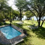 Im Museum in Tsumeb informierten wir uns über die deutsche Geschichte in Namibia, sahen uns die alten Geschütze aus dem 1. Weltkrieg an und bestaunten die traditionelle Bergmannsuniform aus der örtlichen Mine. Am Okawango (Cubango) übernachteten wir in der Nähe von Rundu in einer kleinen grünen Oase oberhalb des Flusses an der Grenze zu Angola. In unmittelbarer Nachbarschaft unserer Zelt-Lodge spielten die Kinder am Wasser.