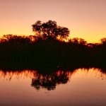 Im Camp Kwando übernachteten wir in kleinen Hütten direkt am Flußufer und tauchten ein in die Geräusch- und Tierwelt im Caprivizipfel. Mit einem offenen Geländewagen fuhren wir durch den Mudumu Nationalpark und sahen die ersten Flußpferde und Büffel. Bei der abendlichen Bootsfahrt auf dem Kwando-River fanden wir weitere Exemplare der nicht ungefährlichen Flußbewohner und beobachteten die ersten kleinen Krokodile und eine Reihe von Vögeln in den Bäumen am Ufer.