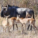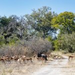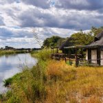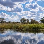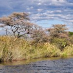 Im Camp Kwando übernachteten wir in kleinen Hütten direkt am Flußufer und tauchten ein in die Geräusch- und Tierwelt im Caprivizipfel. Mit einem offenen Geländewagen fuhren wir durch den Mudumu Nationalpark und sahen die ersten Flußpferde und Büffel. Bei der abendlichen Bootsfahrt auf dem Kwando-River fanden wir weitere Exemplare der nicht ungefährlichen Flußbewohner und beobachteten die ersten kleinen Krokodile und eine Reihe von Vögeln in den Bäumen am Ufer.