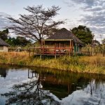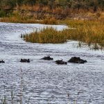 Im Camp Kwando übernachteten wir in kleinen Hütten direkt am Flußufer und tauchten ein in die Geräusch- und Tierwelt im Caprivizipfel. Mit einem offenen Geländewagen fuhren wir durch den Mudumu Nationalpark und sahen die ersten Flußpferde und Büffel. Bei der abendlichen Bootsfahrt auf dem Kwando-River fanden wir weitere Exemplare der nicht ungefährlichen Flußbewohner und beobachteten die ersten kleinen Krokodile und eine Reihe von Vögeln in den Bäumen am Ufer.