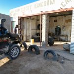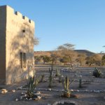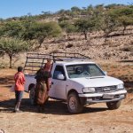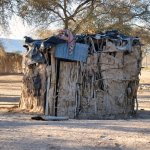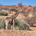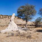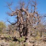 Nördlich von Uis fuhren wir durch das Damaraland am Brandbergmassiv (Königstein, 2.573 m) vorbei. Auf breiten Sandpisten ging es weiter nach Twyfelfontein. Hier zeigte man uns die jahrtausende alten Felsmalereien. Giraffen, Elefanten, Menschen und sogar Seerobben fianden wir auf den rötlichen Felsplatten.  Im, zur Lodge umgebauten, alten deutschen Fort Sesfontein ließen wir den Tag bei einem köstlichen Dinner und Gesangseinlagen der Küchencrew gemütlich ausklingen. Am nächsten Morgen wurde in einer örtlichen Autowerkstatt der Luftdruck der Busreifen überprüft, ehe es über Opuwo im Kaokoveld zu einem Himba-Dorf ging. Unterwegs fanden wir große mächtige Affenbrot-Bäume (Baobab) und rieseige Termitenhügel.