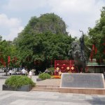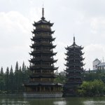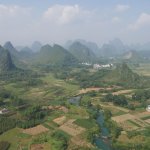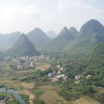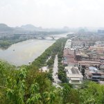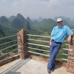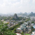 Auf der Fahrt nach Guilin bestiegen wir bei 35 Grad im Schatten erst eine Karstkegelspitze mit großartiger Aussicht und dann im Stadtgebiet den Fubo-Berg. Von dort hatten wir einen herrlichen Blick auf den Li-Fluss und die Innenstadt. Danach ging es in die Fußgängerzone und an den Seen vorbei zum Hotel.