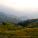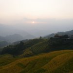 Mit dem Flugzeug flogen wir bis Guilin in Südchina. Von dort fuhren wir weiter mit unserem großen Reisebus nach Langsheng zum großen Umsteige-Busparkplatz. Wir wechselten in einen kleinen wendigen Bus, der uns ins Gebiet des Minderheitsvolks der Yao brachte. Zu Fuß ging es dann hoch in die Reisterrassen von Longsheng. Den Blick am Morgen auf goldgelbe Reisfelder durften wir uns mit hunderten Chinesen teilen, die in der Nacht mit Stativen und Kameras den Berg heraufeilten, um den Sonnenaufgang fotografisch festzuhalten. Der permanente Bauboom in den Reisterrassen wird in Zukunft dafür sorgen, dass diese Täler touristisch total erobert werden. Die eigentlich herrliche Natur und die alten Traditionen werden auf der Strecke bleiben.