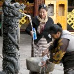 Weithin sichtbar tront der Potala-Palast mit seinen über 1.000 Zimmern über den Dächern von Lhasa. Wir besichtigten auch den prächtigen Sommerpalast und das Sera-Kloster, wo noch heute Mönche ausgebildet werden. Gegenüber unserem Hotel lag das Zentralheiligtum der Tibeter, der Jokha-Tempel, im Herzen der Altstadt. Dort besuchten wir auch ein Frauenkloster.