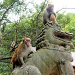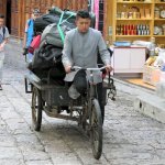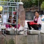 In strömendem Regen auf rutschigen Steinwegen "wandern" wir vom Parkplatz auf dem Shibao-Berg zu den Buddha-Grotten. Dort ist das Fotografieren der Malereien verboten. Auf dem Rückweg machen wir einen kurzen Fotostopp bei den freilebenden Affen. Über die Autobahn erreichen wir bald Lijiang mit seiner weltberühmten Altstadt. Dieses UNESCO-Weltkulturerbe ist wirklich sehenswert - bei Tag und bei Nacht.