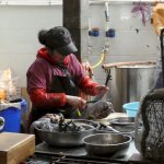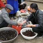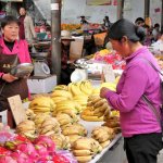 In strömendem Regen auf rutschigen Steinwegen "wandern" wir vom Parkplatz auf dem Shibao-Berg zu den Buddha-Grotten. Dort ist das Fotografieren der Malereien verboten. Auf dem Rückweg machen wir einen kurzen Fotostopp bei den freilebenden Affen. Über die Autobahn erreichen wir bald Lijiang mit seiner weltberühmten Altstadt. Dieses UNESCO-Weltkulturerbe ist wirklich sehenswert - bei Tag und bei Nacht.