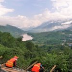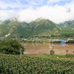 Zwischen den Bergen im nördlichen Yunnan schlängelt sich der noch relativ schmale Yangtze durch die Täler. Im September führte er Hochwasser und erschien an einigen Stellen schon recht breit. Besonders deutlich wurde das an der Yangtze-Schleife bei Shigu. Weiter ging es zur berühmten Tigersprungschlucht, die zu den tiefsten der Welt zählt. Gewaltige Wassermassen zwängen sich an der engsten Stelle durch das Tal. Der Legende nach hat ein Tiger mit zwei Sprüngen dias Wasser überquert.