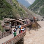 Zwischen den Bergen im nördlichen Yunnan schlängelt sich der noch relativ schmale Yangtze durch die Täler. Im September führte er Hochwasser und erschien an einigen Stellen schon recht breit. Besonders deutlich wurde das an der Yangtze-Schleife bei Shigu. Weiter ging es zur berühmten Tigersprungschlucht, die zu den tiefsten der Welt zählt. Gewaltige Wassermassen zwängen sich an der engsten Stelle durch das Tal. Der Legende nach hat ein Tiger mit zwei Sprüngen dias Wasser überquert.